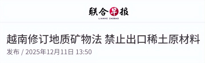 据悉,越南刚刚通过了一部新法,明确规定明年1月1日起,越南将严格控制国内的稀土勘探、开采、加工活动,禁止稀土原材料的出口。